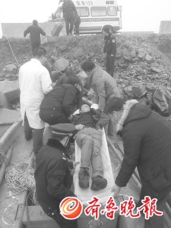 ????15時20分許,警車帶領救護車到了現場,民警和消防員用無動力交通船將醫護人員、醫療器械護送到“華勇起重1號”施工船上,醫護人員查看病人病情后,決定將病人抬到擔架上,民警和船上的人員迅速在施工船與無動力交通船之間搭了一個臨時救援通道,由于臨時通道狹窄、無動力交通船海上搖擺不定,營救人員冒著隨時墜海的危險,在8名民警、消防員和熱心市民張勇等人員的共同努力下,通過擔架將病人抬到無動力交通船上并順利靠岸,經過40多分鐘的奮力營救,營救人員終將病人黃國慶抬到救護車上,用警車開道,護送救護車至董家口港區1號門外,前往醫院搶救,為及時搶救病人的生命贏得了寶貴的時間。目前病人已經得到救治。(通訊員 薛冰 記者 趙波)