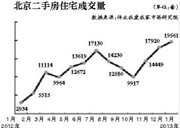 從去年11月份開始,北京二手房市場出現淡市不淡的行情,11月成交量為14449套,12月17920套,而在今年1月則達到19561套,創兩年來月度成交量的新高。成交量放量大漲,也帶動二手房價格的上漲,年后的二手房報價更是加速上漲。