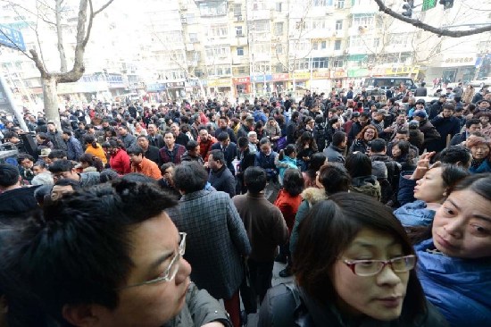 3月4日,江蘇省南京市華僑路房產交易中心出現了爆棚,人們向潮水一樣涌進交易大廳。(樂濤)