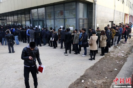 3月3日,江蘇南京房產交易中心下午剛開門,市民蜂擁而至排隊辦理二手房買賣手續。(董金林)