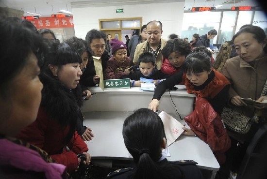 3月5日,北京市朝陽區地稅局第六稅務所人頭攢動,眾多房產交易者在等待辦理業務。(富田 攝)