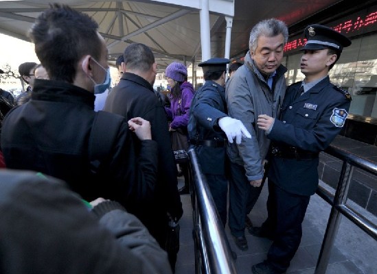 3月4日,位于南京市華僑路的南京房地產交易市場里,擠滿了前來辦理交易過戶手續的買房人和賣房人,當地警方已出動警力在門口執勤,控制進場人數。(安心)
