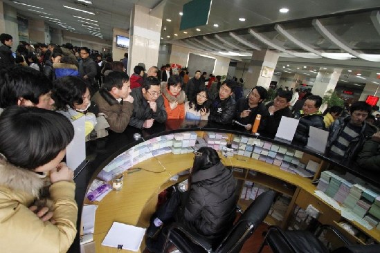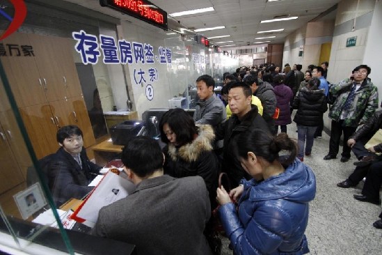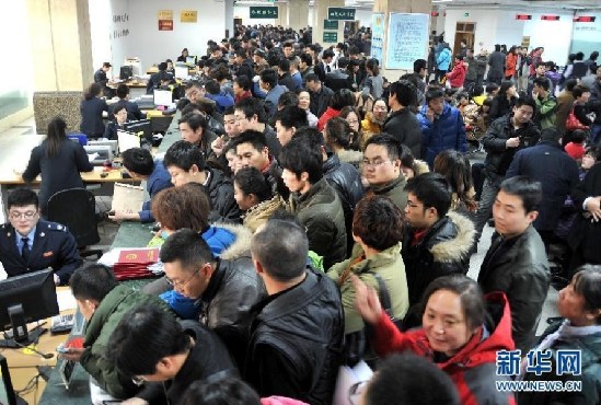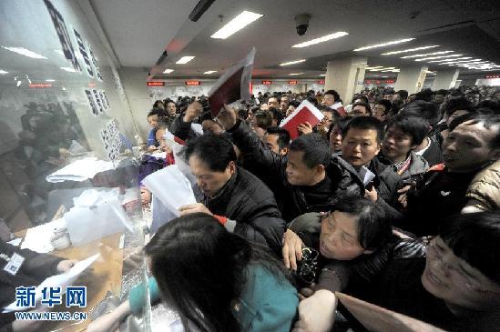 3月4日,江蘇省南京市華僑路房產交易中心出現了爆棚,人們向潮水一樣涌進交易大廳。(樂濤)
