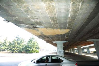 “有輛攪拌車在重慶北路被高架路卡住了,一直出不來!”昨日11時(shí)許,記者接到市民報(bào)料后趕到現(xiàn)場,發(fā)現(xiàn)一輛近4米高的白色攪拌車停在重慶北路雙流高架路橋底北側(cè),車后的攪拌罐頂有兩塊直徑1米多的凹陷。 “剛才這輛車被卡在橋底了! ”一名目擊者介紹道,早晨8時(shí)許他看見,攪拌車半個(gè)車身進(jìn)入橋底,但后面的攪拌罐被高架橋“按”在了下面,無論司機(jī)怎么將油門踩得轟轟響,車輛始終無法倒出。