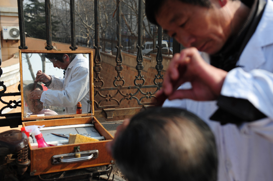 青島新聞網(wǎng)3月8日訊 一把鋒利的剃刀,一位雙鬢斑白的老人,一張斑駁老舊的椅子,伴隨著嗞嗞拉拉的聲音,胡須落地,熱毛巾從臉上撤下,老人長舒一口氣,對(duì)視鏡子自語道:“舒服啊……?!边@樣的畫面可能再過幾年,就只能從影像才能看到了。