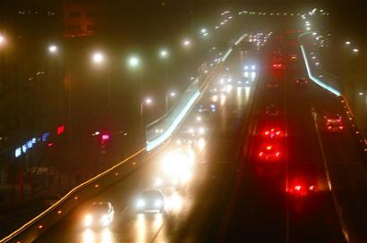 ????昨晚,膠寧高架路上的車輛在大霧中緩慢行駛。從昨天傍晚開始,沿海區(qū)域出現(xiàn)了平流霧,霧氣從海上吹來迅速將市區(qū)籠罩在霧氣中,但霧氣僅存在沿海一線及周邊區(qū)域,沒有影響各交通口岸的出行。據(jù)市氣象臺預(yù)報員介紹,南風(fēng)將海上的濕氣吹到陸地上形成平流霧,霧氣將在今天早晨散去,今天我市局部地區(qū)將有陣雨。(記者 孫啟孟)