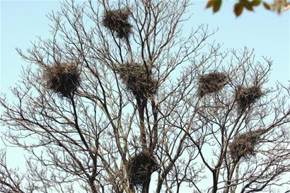 你見過搭建了7個(gè)喜鵲窩的大樹嗎?春天來了,記者在市區(qū)、鄉(xiāng)村等地看到了為繁育后代忙活的喜鵲家族,它們素有建筑師之稱,用樹枝、木棍、鐵絲做成的鳥巢個(gè)比個(gè)的“精致”、“豪華”,有的干脆把大樹當(dāng)成了小“社區(qū)”,或者幾個(gè)窩上下連在一起形成小“高層”,還有的剛剛開始在路燈桿上選址搭建。