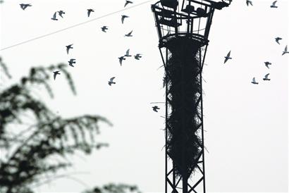 3月份至5月份是喜鵲的筑巢高峰期,更有意思的是,喜鵲們對鳥巢開始講究建筑質(zhì)量了,樹枝和草棍早已被淘汰,鐵絲成了主要的“建筑材料”。電力部門工作人員告訴記者,曾在城陽北站附近拆了一個(gè)“豪華”鳥巢,光鐵絲就重達(dá)11市斤。張世平解釋說,到處建窩反映了雄喜鵲的“領(lǐng)地”意識,這是它們在劃分地域防情敵。(記者 于波 徐常青 攝影報(bào)道)