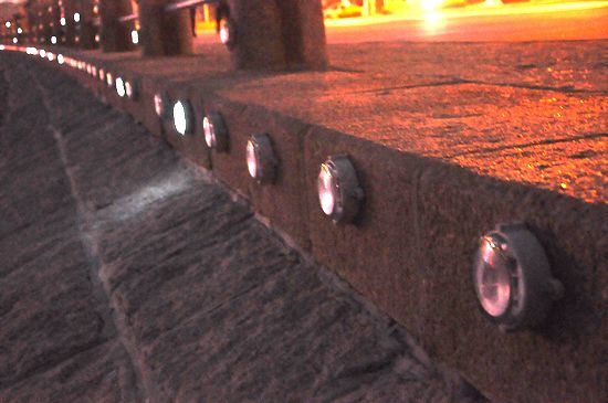 景觀小燈不大,輪流閃爍發出白色的燈光
