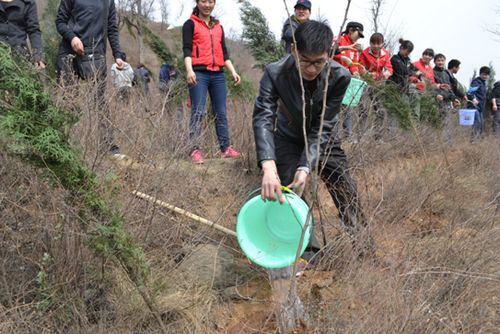??? 張云瑞將生命之水小心翼翼的澆蓋在小樹苗周圍