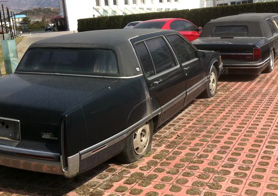 從前風擋的年審貼來看,這幾輛車去年都沒有年審。有的車懸掛的是黑色外企牌照,有的車則干脆沒有牌照。據附近一位經過的市民講,這幾輛老爺車停在這里很久了,很少見人移動過他們。估計本來是做婚慶的,但可能因為實在太破沒人愿意用了。(青島新聞網記者)