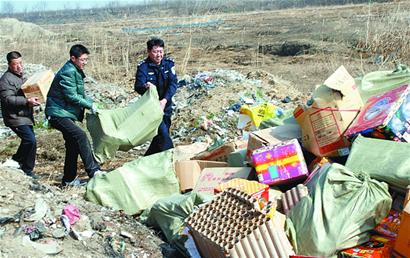 3月21日上午,萊西警方用了兩輛卡車才將這些煙花爆竹全部運走,銷毀地址選在梅花山街道辦事處轄區(qū)的一條河道內(nèi),“這個地方比較開闊,而且周圍沒有村子,不會有什么危險。 ”民警告訴記者,這個地區(qū)幾乎已經(jīng)成了銷毀煙花鞭炮的專用區(qū)域,在銷毀現(xiàn)場旁便有河水,更能保證銷毀過程的安全。