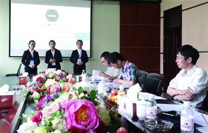????昨日,記者在第五屆全國大學生“創(chuàng)新、創(chuàng)意及創(chuàng)業(yè)”電子商務挑戰(zhàn)賽山東賽區(qū)決賽現(xiàn)場看到,37支參賽隊分成3組,依次進行封閉答辯。每隊的參賽選手對自己的電子商務創(chuàng)業(yè)項目進行8分鐘陳述。隨后,比賽進入評委與選手的快問快答環(huán)節(jié)?!按舜未筚愂怯山逃扛叩葘W校電子商務類專業(yè)教學指導委員會主辦,山東賽區(qū)總共有900多支隊伍報名參賽。經(jīng)過學校預賽,共推選108個項目進入山東賽區(qū)初賽,經(jīng)過評委專家的嚴格評審,共有37個項目入圍省決賽?!鄙綎|科技大學經(jīng)濟管理學院黨委副書記劉洪鋒說,從參賽作品來看,六成以上都瞄準了移動互聯(lián)網(wǎng)。這和移動互聯(lián)網(wǎng)的快速崛起不無關(guān)系,里面蘊藏了巨大商機。根據(jù)中國互聯(lián)網(wǎng)信息中心發(fā)布的 《第35次中國互聯(lián)網(wǎng)絡發(fā)展狀況統(tǒng)計報告》,截至2014年年底,中國網(wǎng)民規(guī)模6.49億,手機網(wǎng)民5.57億,其中使用手機支付功能的用戶占手機網(wǎng)民總數(shù)的38.9%。 拉拉隊女生一起“約瘦身”