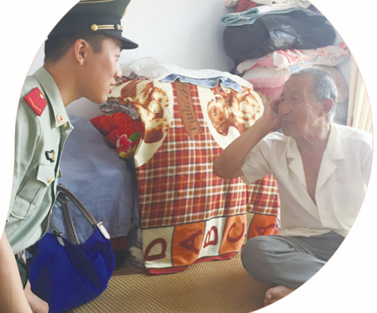 ????“我入伍的時候,就你們這么大,十八九歲。”88歲高齡的徐世榮坐在自家的炕頭上,看到前來看望他的身著軍裝的小戰(zhàn)士們,一邊感嘆,一邊張羅著給大家倒水。雨后的天氣十分炎熱,我們來的時候不巧正碰上村里停電,風扇無法運轉(zhuǎn),幾位志愿者干脆拿起了扇子,湊到徐大爺跟前,邊為其扇風,邊聽他講述那段逝去的崢嶸歲月。