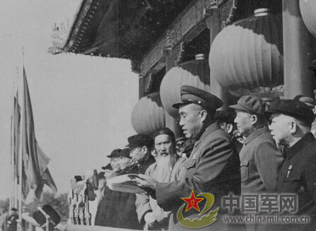 ????1、中國人民志愿軍代表團出現(xiàn)在天安門觀禮臺上。