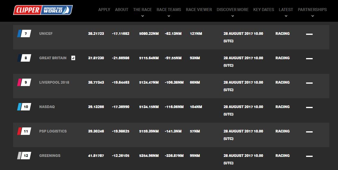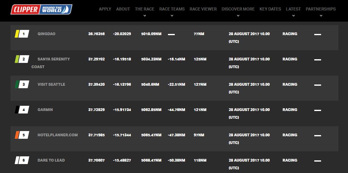 位于第十的‘納斯達克號’賽隊船長Rob Graham報告中說:“過去24小時行駛的非常順利-我們最終擺脫了弱風帶,進入了比較理想的北風帶,進行了幾個小時的掌舵和航向變更,然后升起了中等重量球帆,接著就開始全速前進。”