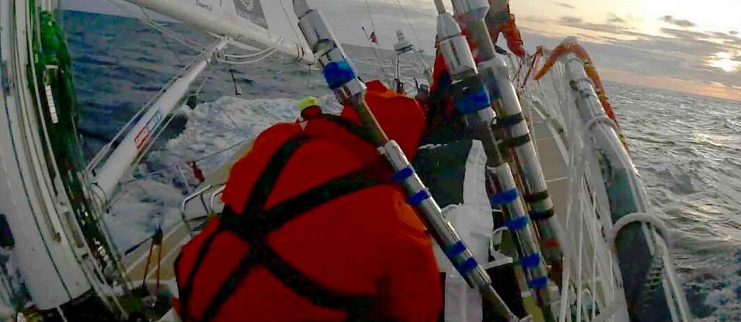 然而并不是一切都按照計劃進行的,他報告補充說:“我們有段行駛是非常令人興奮的,白天的時候行進了不少海里,但是傍晚的時候,球帆把前支索給蓋上了,我一開始是打算在日落之前就把球帆降下來的,并不是讓它直接掉落在前甲板上,影響了其他索具的操作,真沒想到會是這樣。”