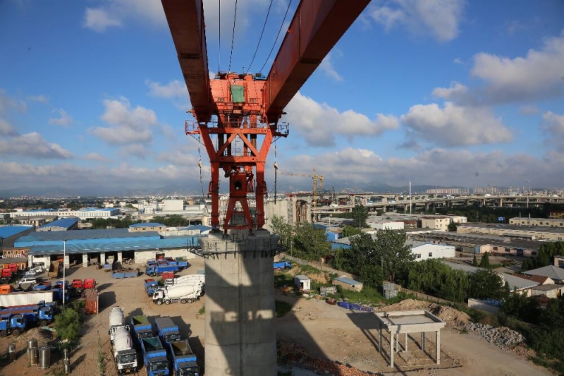 架橋機氣勢恢宏地矗立在城市的上方