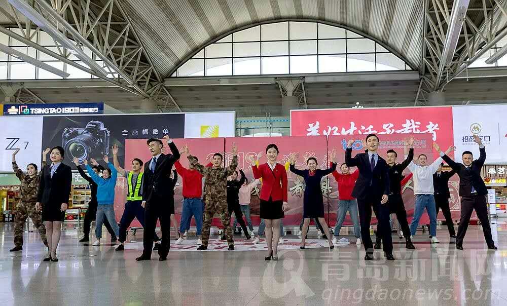 青島機(jī)場(chǎng)上演春運(yùn)歌舞秀。(苗瑋攝)