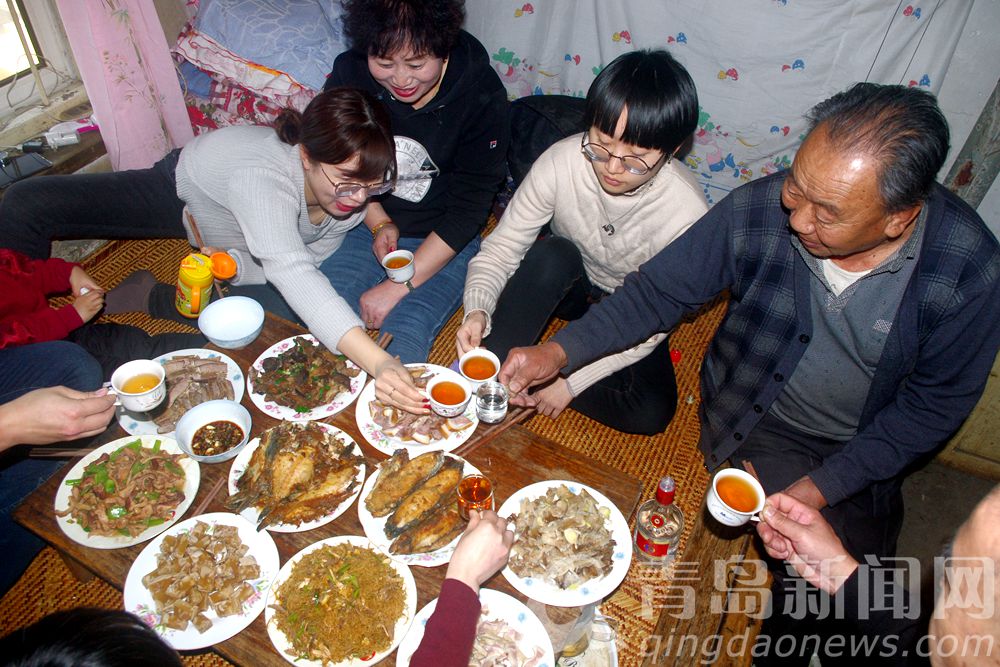 青島新聞網2月8日訊(文/龐為 圖/逄淑才)過年了,鄉村里人們聚餐是啥樣?在青島周邊的普通鄉村,過年的飯菜和城里有很多一樣的地方,也吃餃子,也有大魚大肉。但細細品味,還是有很多不一樣的地方:寒冷的冬天里,一家人圍坐炕頭喝酒吃飯,從心里往外溫暖熱乎;用了多少代的大鐵鍋煮出的餃子,帶著更濃的年味兒和鄉土氣息;自家養的雞下的蛋,吃著更香;老媽親手熬制的豬皮凍,口感更地道,更讓人放心……這過年啊,還是回鄉村老家好,那里的親情友情和鄉愁的味道更濃些!