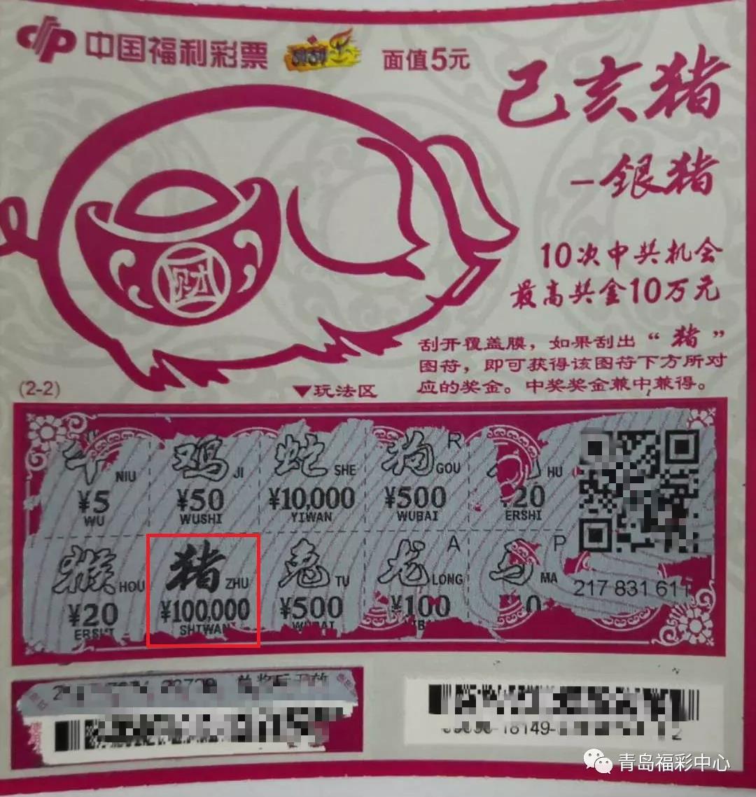 在青島地區購買本市銷售的“己亥豬”5元、10元票種(以物流碼為準):“中10元再送5元即開票”。