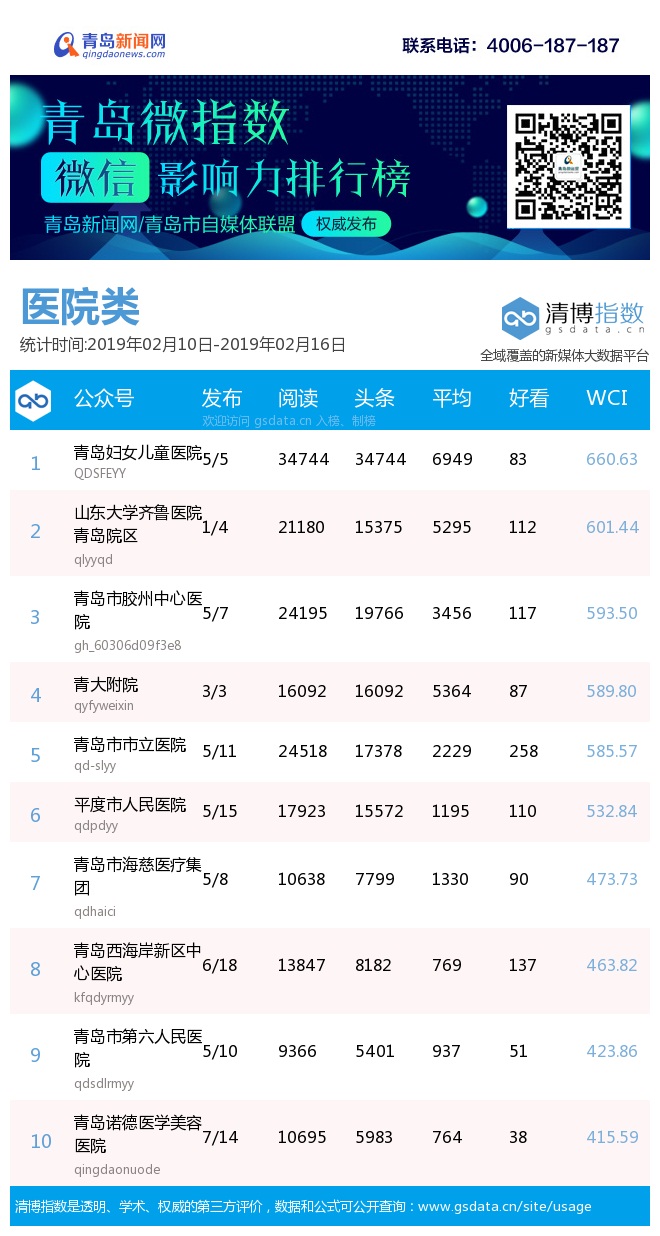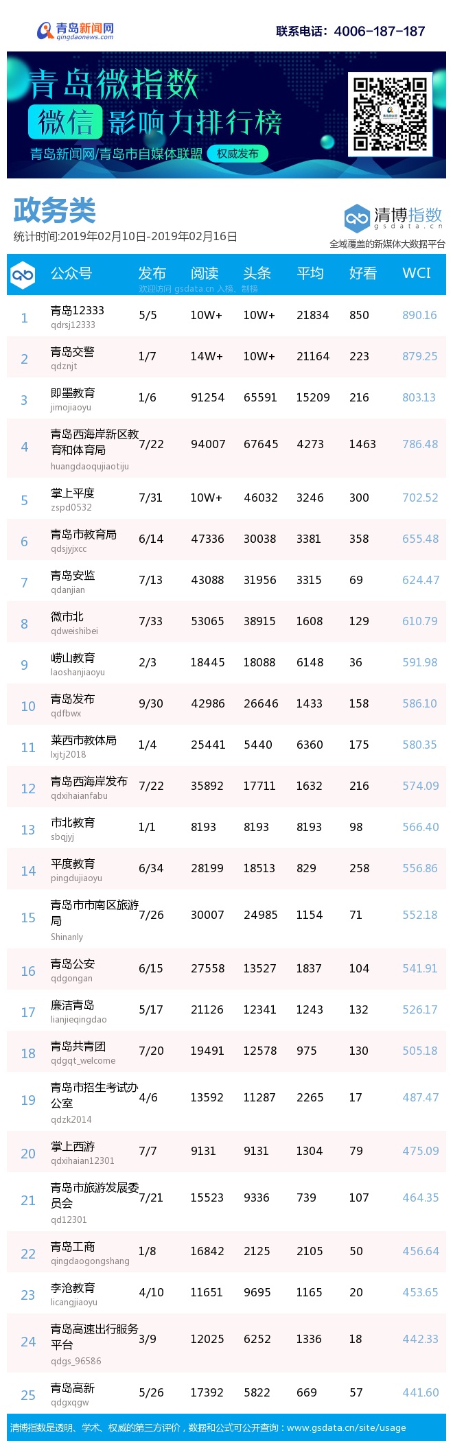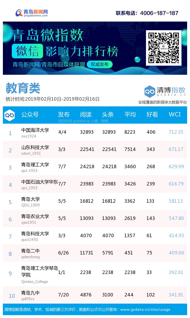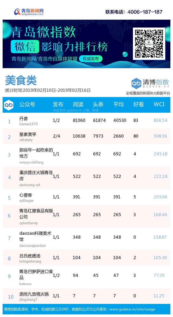 3、本次榜單收錄了青島14個行業(yè)微信公眾號,如您的賬號暫未收錄,可聯(lián)系4006-187-187。