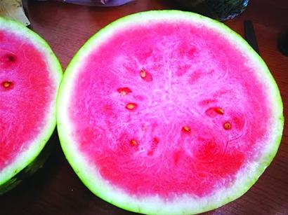 在“太空西瓜”育種基地,青島市農(nóng)業(yè)科學(xué)院專家對(duì)工作人員進(jìn)行了詳細(xì)的培育指導(dǎo)。技術(shù)人員對(duì)其中一個(gè)“太空西瓜”進(jìn)行了糖度測(cè)試,測(cè)試儀上清晰地顯示出13.1度,而同一品種的普通西瓜糖度只有10.9度。這種西瓜吃起來(lái)更加汁甜黏手。