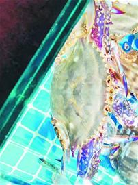 趙曰陽展示海捕蟹(左)和養(yǎng)殖蟹