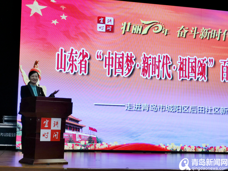 本次百姓宣講團走進城陽區后田社區,宣講團的8名宣講員都是從全省不同行業、不同崗位的優秀宣講員中層層選拔出來的基層優秀百姓代表。宣講員們緊緊圍繞慶祝新中國成立70周年這條主線,用樸實的話語,切身的感受,講述著感人事跡,傳揚著動人故事,傳遞著夢想的力量,展現了廣大黨員干部群眾在黨的領導下,創造著不平凡的業績,也展示了平凡而又偉大的普通百姓為實現中國夢而努力拼搏的良好精神風貌。