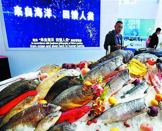 本屆博覽會(huì)上亮相的各種海鮮。王偉攝