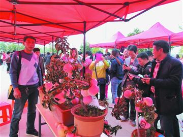 “盆景蘋果擺放在家里,不僅消費者感受種植樂趣,美化居室環境,還能采摘品嘗,自然受到消費者的喜愛。今年,我培育的1000多盆蘋果盆景已經售出了一半,預計年收入達30余萬元。”隋恒君說,除了培養蘋果盆景,他還培育出葡萄、梨、桃、李子、杏、柿子、山楂、紅棗和櫻桃等十多種水果盆景。下一步,應不少客戶的需求,他打算打造流動式果園,水果盆栽除了當做盆景銷售外,還可以直接運輸到一些采摘園、商務場合和節會現場,市民采摘品嘗完后,再運回基地繼續培育。另外,他還打算建冷庫和大棚,通過科技手段干預,錯時讓水果盆景上市銷售。