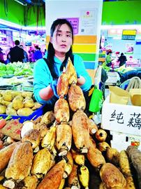 現在正是蓮藕大量上市的季節(jié),在島城幾家的農貿市場,幾乎都能看到蓮藕的身影,價格從3元一斤到6元一斤不等。