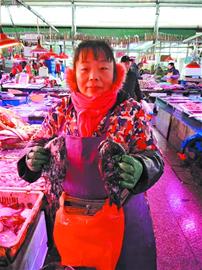在鎮江北路農貿市場,記者看到很多攤位都有墨魚出售。來自滕州的業主蔣繼玉在市場賣海鮮多年,什么季節上什么貨她很清楚。蔣繼玉告訴記者,這段時間碰到墨魚的大流,價格比以往便宜不少。12月7日上午九時,蔣繼玉剛從小港碼頭趕回市場。星期六是市場最為繁忙的一天,很多老人都會采購海鮮,等待孩子們回家聚餐。這天,蔣繼玉比往常多進了上百斤的海鮮,僅僅墨魚就進了200多斤。 蔣繼玉介紹,這次趕上了墨魚汛期,所以這次碼頭捕撈上來的墨魚非常多,價格也便宜。記者看到,幾個塑料筐里都盛著墨魚,上面還有碎冰。蔣繼玉按照墨魚的大小分別擺放,一斤左右一只的墨魚28元一斤,再小一點的25元一斤。記者了解到,在碼頭,成筐買大小不挑每斤10元。但是,墨魚大小不一,小墨魚到傍晚,賠本也要處理了。