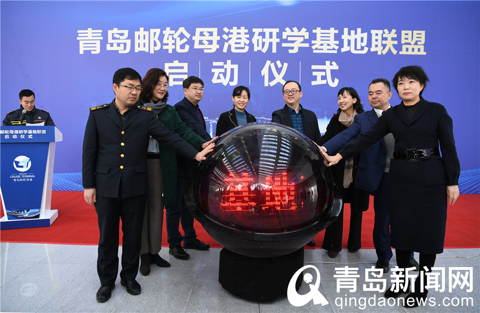 青島郵輪母港研學基地聯盟啟動儀式現場。