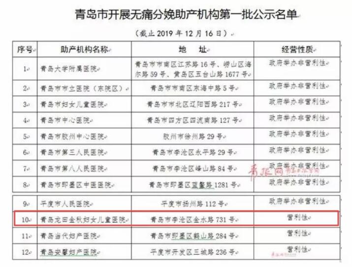 青島市開展無痛分娩助產機構!青島龍田金秋婦女兒童醫院