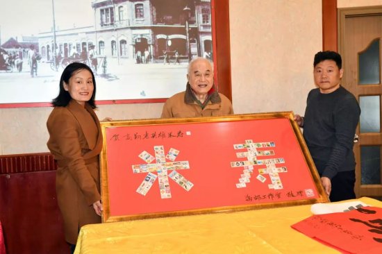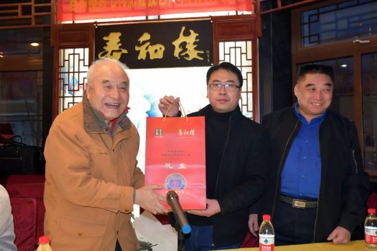 張鐵人、司海英、洪琥、紀向武、劉正信等書畫家向高翔老英雄贈送了書畫作品,海軍集郵研究會贈送了用百余張郵票精心制作的“米壽”郵匾,春和樓向高翔老英雄敬獻了“百歲壽星桃”和“春和樓創立128年精品禮盒”。