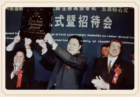 美國優質服務協會向張瑞敏頒發國際星級服務最高榮譽“五星鉆石獎”