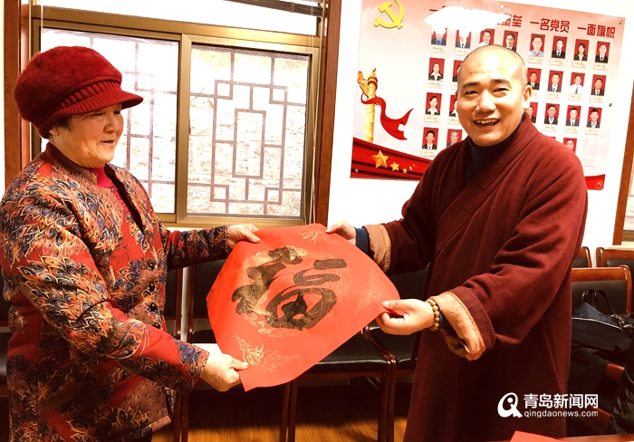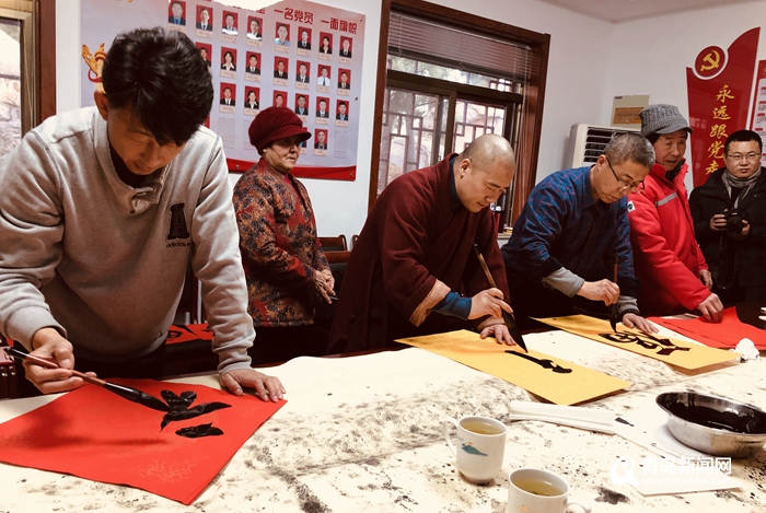 青島新聞網1月7日訊(記者 朱穎)“過了臘八就是年。”為了讓老百姓有個更加暖心的“鼠年”,1月5日,華嚴管理處開展“迎新春送福進社區”活動,書法愛好者們將現場書寫的600余張“福”字親手交給了社區居民,讓當地村民感受到了別樣溫暖。
