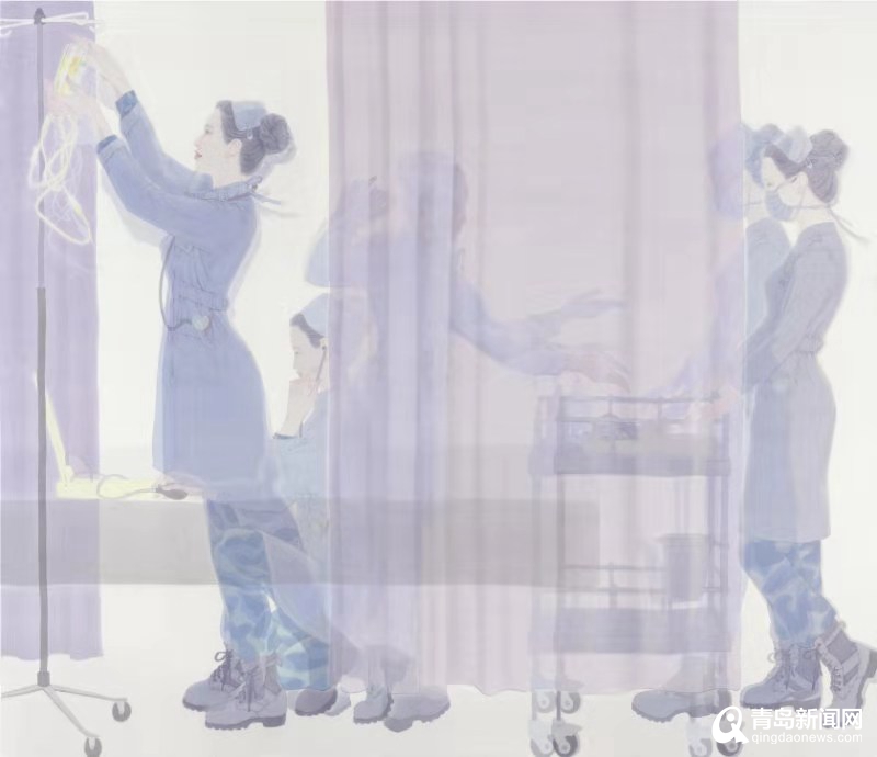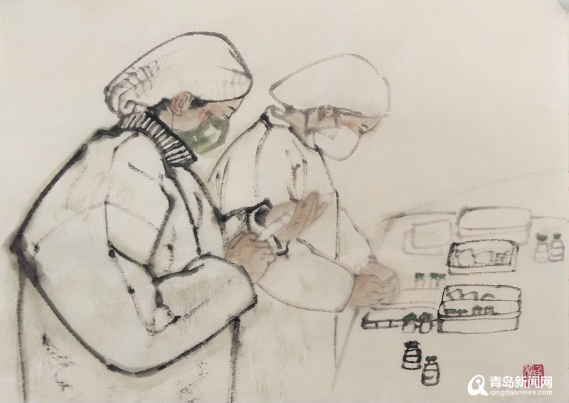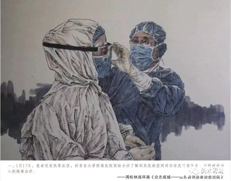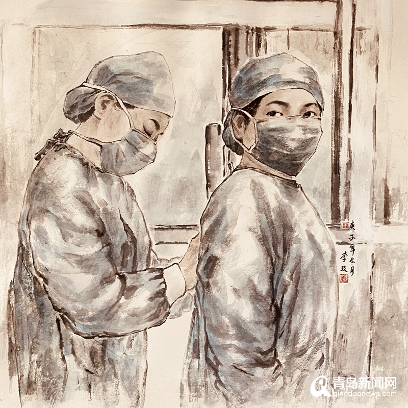 青島畫(huà)院的書(shū)畫(huà)家們用自己的畫(huà)筆描繪醫(yī)務(wù)人員奔赴一線(xiàn)、馳援武漢,社會(huì)各界捐款捐物、大愛(ài)無(wú)疆,人民群眾同心協(xié)力、守望相助,基層干部值班值守、排查服務(wù)等美術(shù)作品,集中呈現(xiàn)出這個(gè)特殊時(shí)期的精神圖譜。