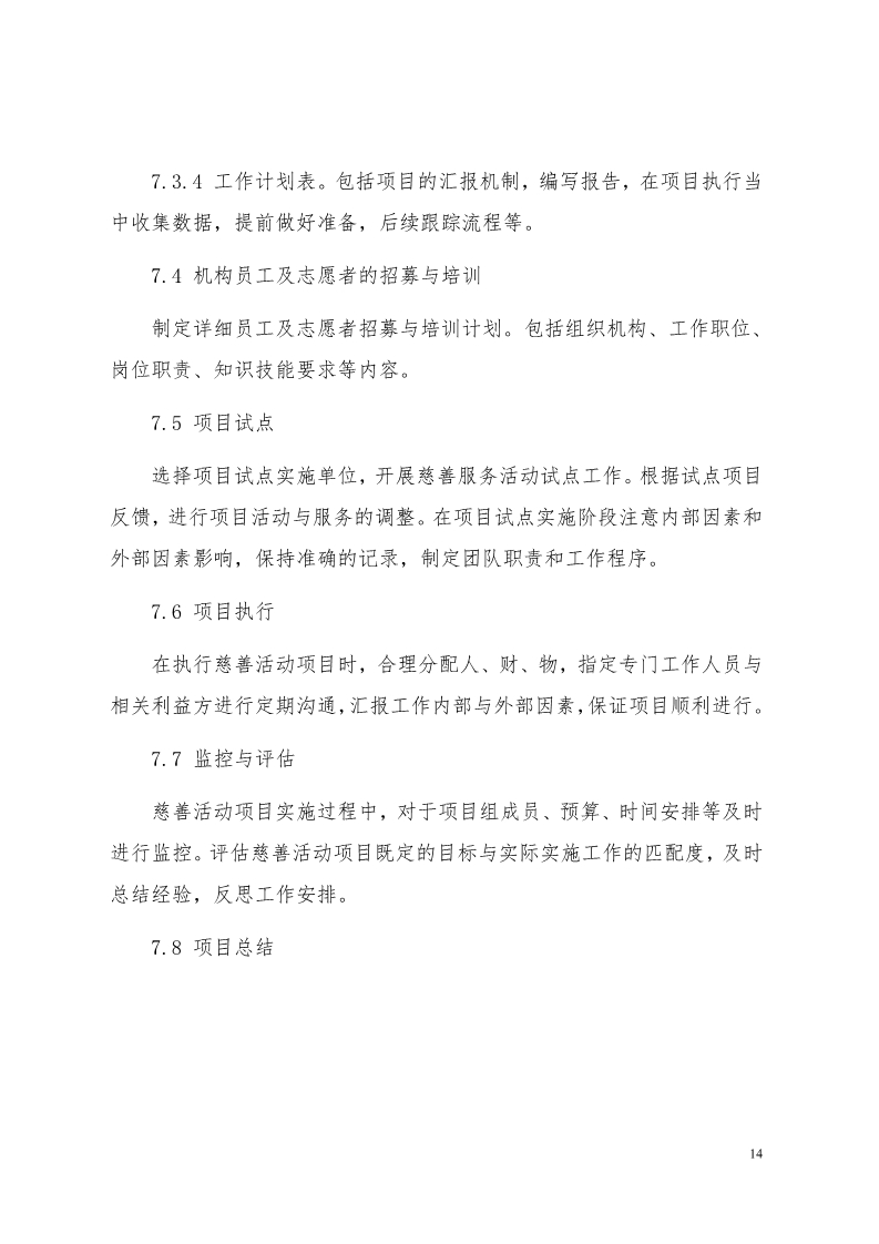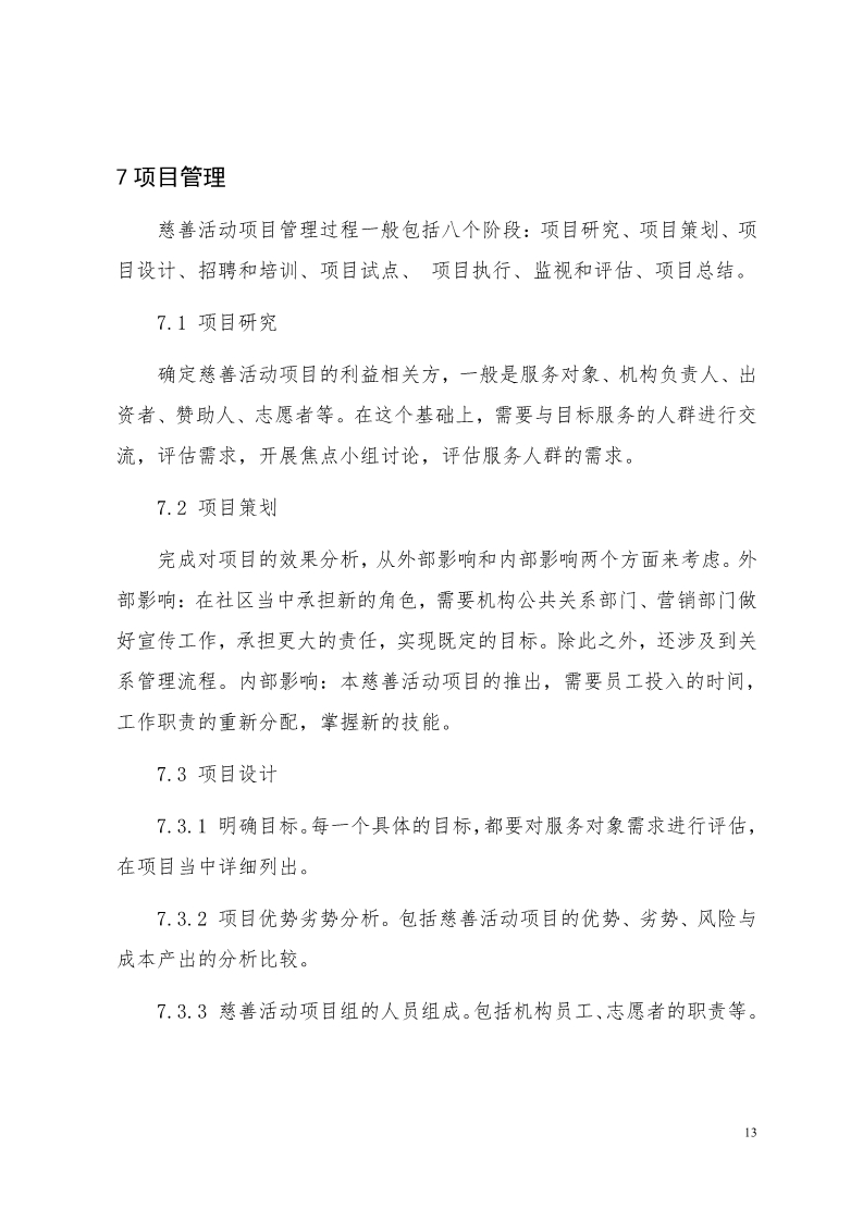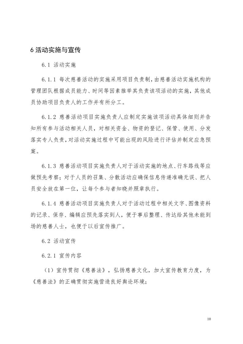 《青島市慈善活動指引》具有三個突出的特點:一是聚焦理論聯(lián)系實際。根據(jù)該市慈善事業(yè)發(fā)展服務的中心工作,整合慈善活動的相關理論,較好的規(guī)定了慈善活動的術語、定義、服務宗旨、服務內容、服務范圍。二是緊扣現(xiàn)實需求。根據(jù)青島市慈善組織以及慈善服務活動的實際需求,較好的制定了開展慈善活動的原則與流程、項目化運作以及質量控制等。三是著眼于全流程系統(tǒng)化管理。根據(jù)慈善活動管理的實際要求,明確了慈善活動的募捐管理、宣傳與輿情控制、志愿者管理、服務保障等。此外,指引還明確了制定過程中的相關引用文件;為適應時代發(fā)展要求,還預留了進一步修訂與完善的空間和接口,具有較強的適用性。
