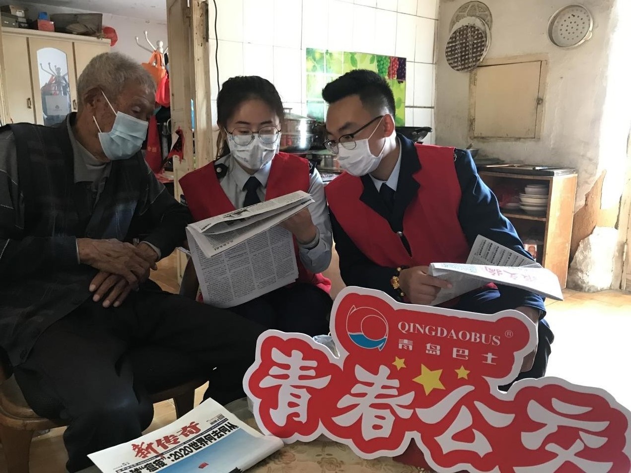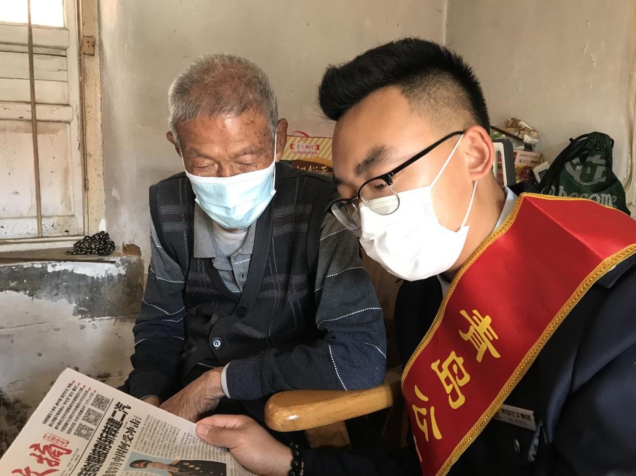 90歲的曲方平大爺家,看到志愿者到來的剎那間,老人臉上浮現(xiàn)出驚喜的表情,志愿者為曲大爺帶來了他愛看的雜志和報(bào)刊,共青團(tuán)志愿者張恒瑞和孫偉杰為曲大爺誦讀了報(bào)紙上的精彩文章,曲大爺說聽志愿者讀報(bào),今天就不用費(fèi)眼神看了。團(tuán)員志愿者說:只要爺爺愛聽,以后我們會常來陪伴您為您讀書讀報(bào)的。曲大爺聽了高興的拍手叫好。志愿者詢問了曲大爺最近的身體情況,講述了最近外面的一些新鮮事與老人一起分享。