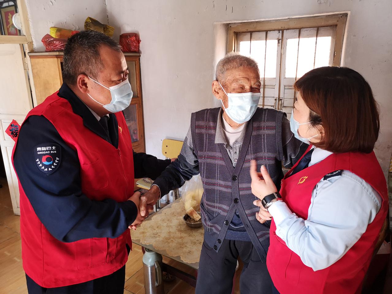 90后志愿者是朝氣蓬勃,奮發(fā)有為,肩負(fù)民族未來希望的青年一代。五四青年節(jié)來臨之際,青島市慈善益站“怡善巴士”青島公交嶗山巴士第六分公司愛心團(tuán)隊(duì)的黨團(tuán)員志愿者孟珂、丁健、孫偉杰、張恒瑞在黨支部書記董善杰的帶領(lǐng)下,相約來到嶗山區(qū)金家?guī)X街道王家村社區(qū)探望結(jié)對的老人,為老人購買了新鮮雞蛋、水果和老人愛吃的桃酥。