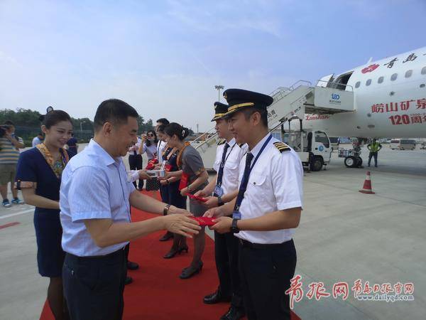 為青島礦泉號首飛航班機組頒發(fā)證書