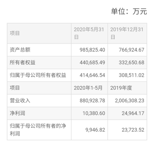 公告顯示,卡奧斯2019年營業(yè)收入200.63億元,凈利潤2.49億元。今年1-5月營業(yè)收入88.09億元,凈利潤1.04億元。