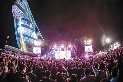 10月2日,2020青島鳳凰音樂節(jié)在金沙灘啤酒城開幕,知名歌手傾情獻(xiàn)唱,成為時(shí)尚青島的“新地標(biāo)”。本報(bào)資料照片