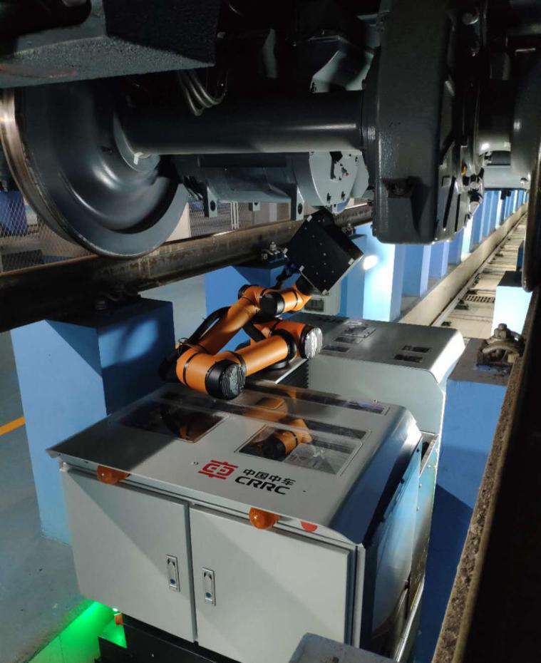 智能檢修機器人系統融合了高柔性協作機器人技術、視覺圖像處理技術、高性能圖像處理計算、綜合信息化平臺等技術,創新性地打造一款具備視覺和自控制能力的機器人綜合檢測系統,對車輛實施檢查作業,輔助傳統人工檢修城市軌道車輛的作業,為智能化的車輛全生命周期管理的實現提供重要支撐。本系統應用于國內外地鐵日檢領域,將是軌道行業取代人工作業實現智能化檢修的典型代表。