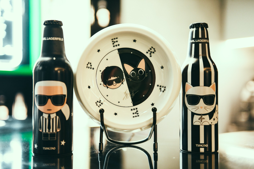 前不久,青島啤酒與KARL LAGERFELD品牌以“繆斯”作為核心概念,重新設計夜貓子啤酒瓶身,延續之前夜貓子系列的黑色瓶身,輔以KARL LAGERFELD品牌條紋、星星等元素,并分別印上Karl Lagerfeld和愛貓Choupette Lagerfeld的經典圖案。