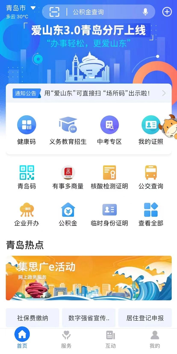 青島新聞網(wǎng)7月22日訊 2022年,青島市大數(shù)據(jù)發(fā)展管理局立足于用戶視角,拓展優(yōu)化政務(wù)服務(wù)掌上辦,不斷推動(dòng)辦事服務(wù)由政府供給導(dǎo)向向群眾需求導(dǎo)向轉(zhuǎn)變,由被動(dòng)服務(wù)向主動(dòng)服務(wù)轉(zhuǎn)變,打造智慧便捷政務(wù)服務(wù),持續(xù)提升群眾獲得感,對(duì)“愛山東”青島分廳進(jìn)行了3.0版本的全面優(yōu)化升級(jí)。
