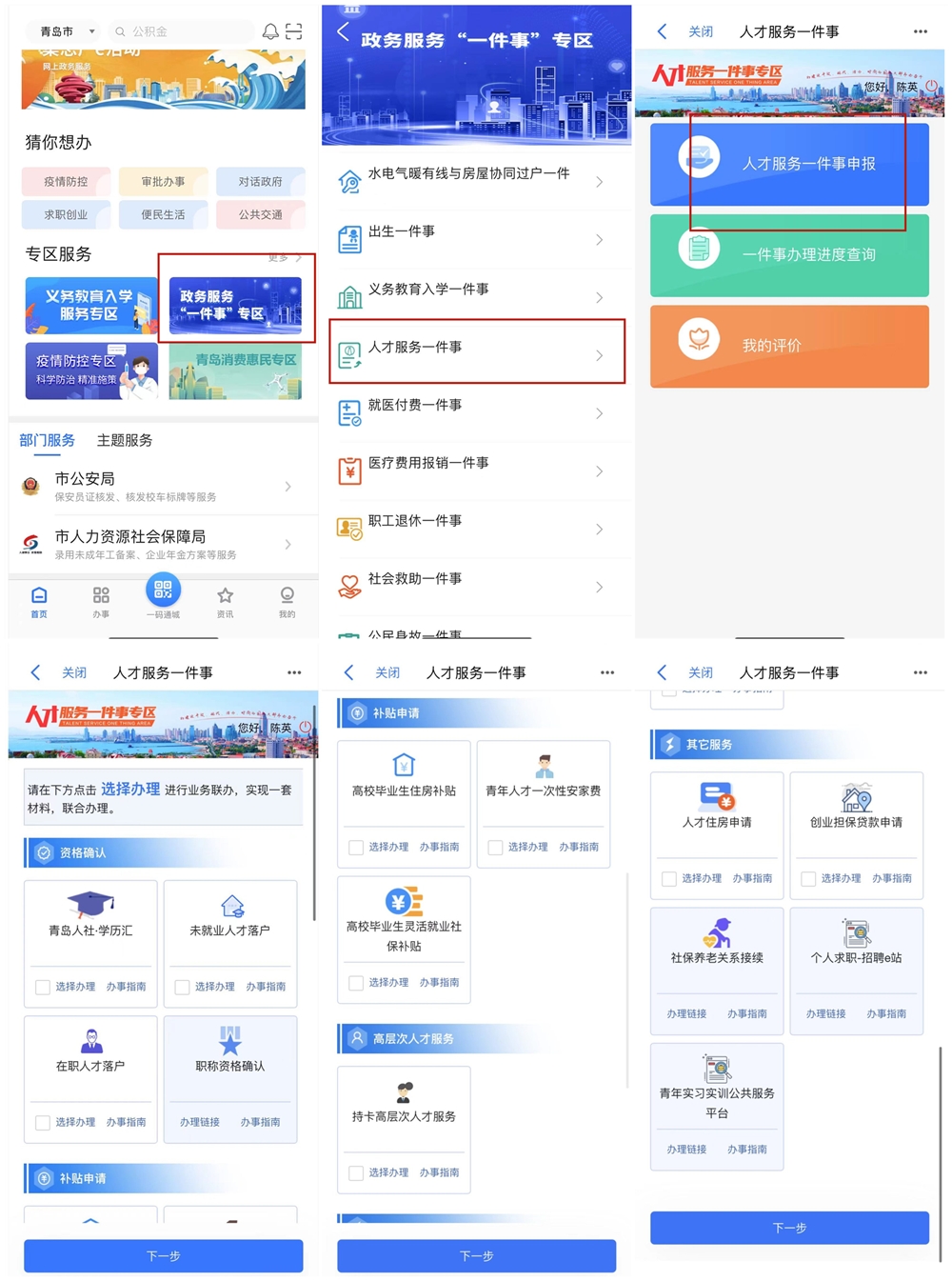 “人才服務(wù)一件事”聯(lián)辦平臺上線后,服務(wù)對象可在“愛山東·青e辦”APP專區(qū)服務(wù)中的“政務(wù)服務(wù)一件事專區(qū)”點(diǎn)擊“人才服務(wù)一件事”辦理入口,根據(jù)自身需求選擇單項業(yè)務(wù)或選擇多個事項同步聯(lián)辦,從“最多跑一次”“一次不用跑”跨越至“一鍵無煩惱”。包括“青島人社·學(xué)歷匯”、未就業(yè)人才落戶、在職人才落戶、職稱資格確認(rèn)、高校畢業(yè)生住房補(bǔ)貼、青年人才一次性安家費(fèi)、高校畢業(yè)生靈活就業(yè)社保補(bǔ)貼、持卡高層次人才服務(wù)、人才住房申請、創(chuàng)業(yè)擔(dān)保貸款申請、社保養(yǎng)老關(guān)系接續(xù)、個人求職-招聘e站、青年實習(xí)實訓(xùn)公共服務(wù)平臺在內(nèi)的13個高頻人才服務(wù)事項辦理依托該平臺實現(xiàn)了“零跑腿”,信息只需填寫一遍、材料上傳一套、申請?zhí)峤灰淮危k理次數(shù)由原來最多13次縮減為1次,提交申報材料比原來減少47%。同時,辦理進(jìn)度可實時查詢,滿意程度一鍵反饋,有效解決了人才業(yè)務(wù)經(jīng)辦零散化、碎片化問題。