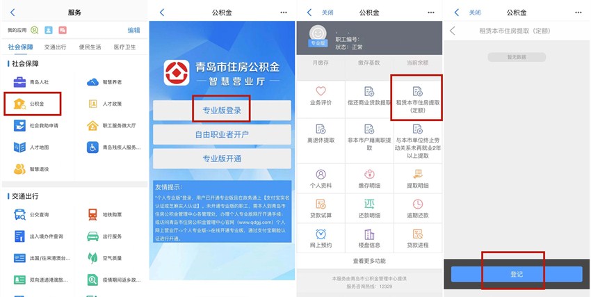 職工租賃住房申請?zhí)崛∽》抗e金的,每人每年只能申請?zhí)崛∫淮巫》抗e金支付租金,兩次提取時間間隔不少于十二個月。租賃本市住房的職工需要申請?zhí)崛」e金的,現(xiàn)在可登陸“愛山東·青e辦”,在首頁點擊“更多”,進入“服務(wù)”詳情頁后,在“社會保障”分類下選擇“公積金”,進行專業(yè)版登錄后,選擇“租賃本市住房提取”,選擇“登記”填寫所需信息后,即可進行辦理。